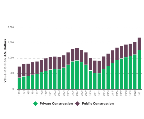 Looking into what’s next for the construction industry, reports suggest the construction sector will continue to be the largest contributor to the U.S. economy in 2023, growing by nearly 9% in 2022 and continuing to expand well past 2025.
